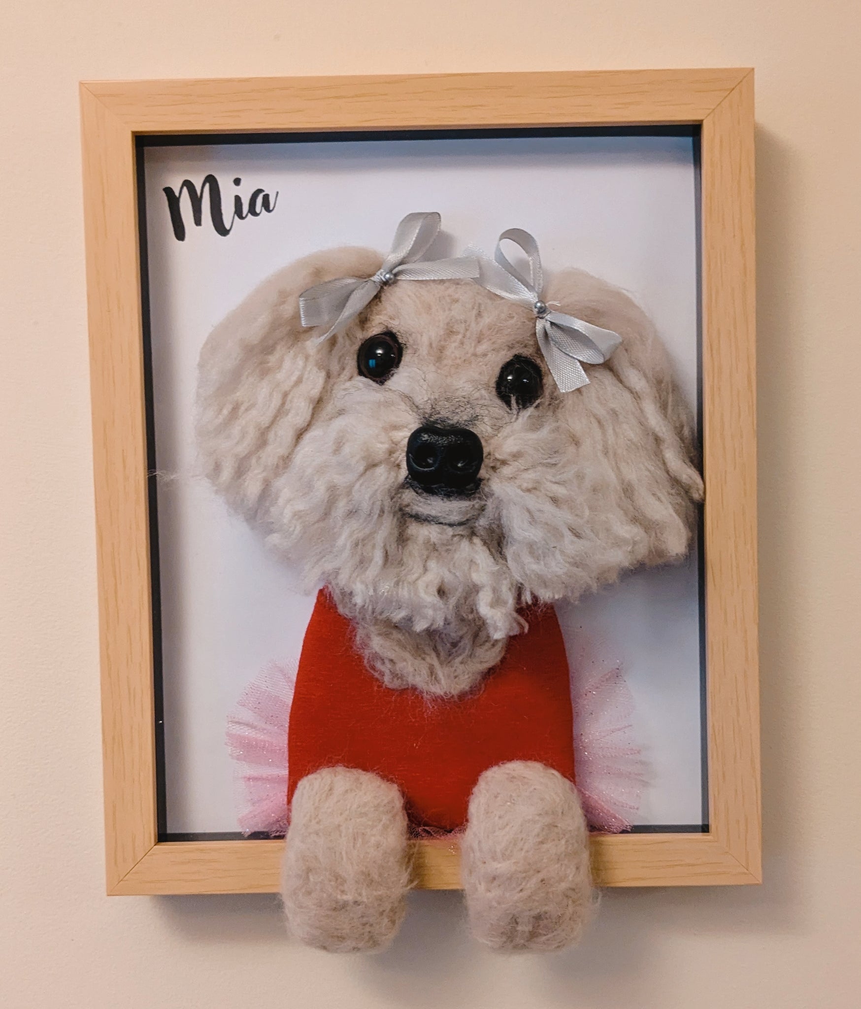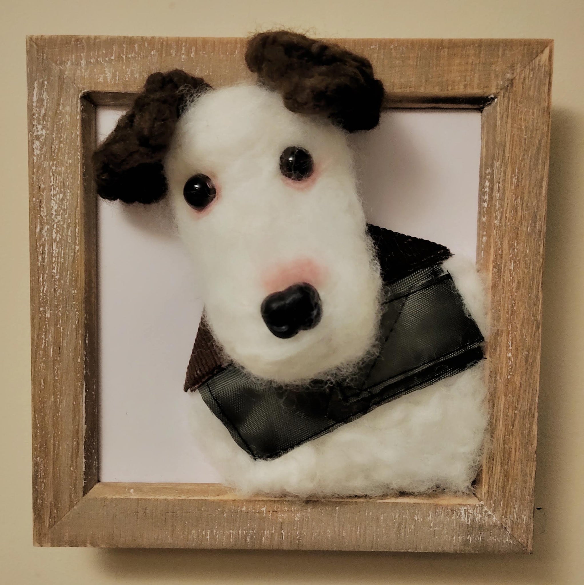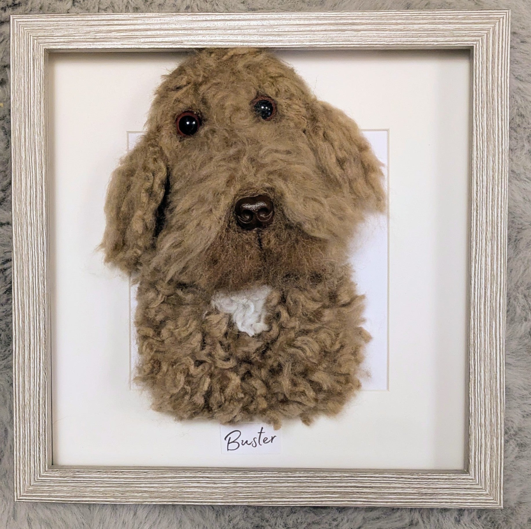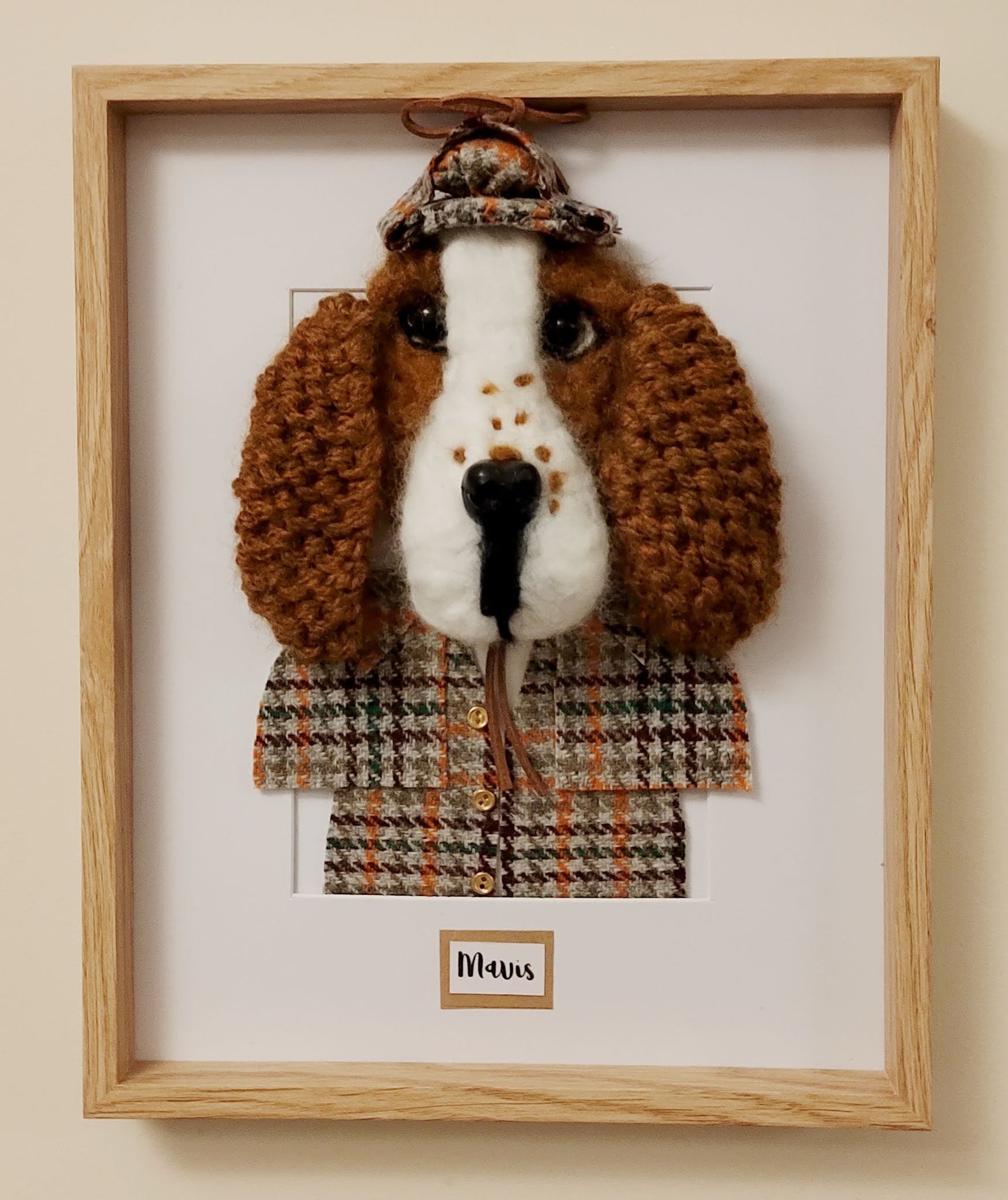 Custom made animal portraits handcrafted from soft yarn and securely sewn eyes and noses. Accessories can be requested like Tweed Jackets and caps which are all handmade.