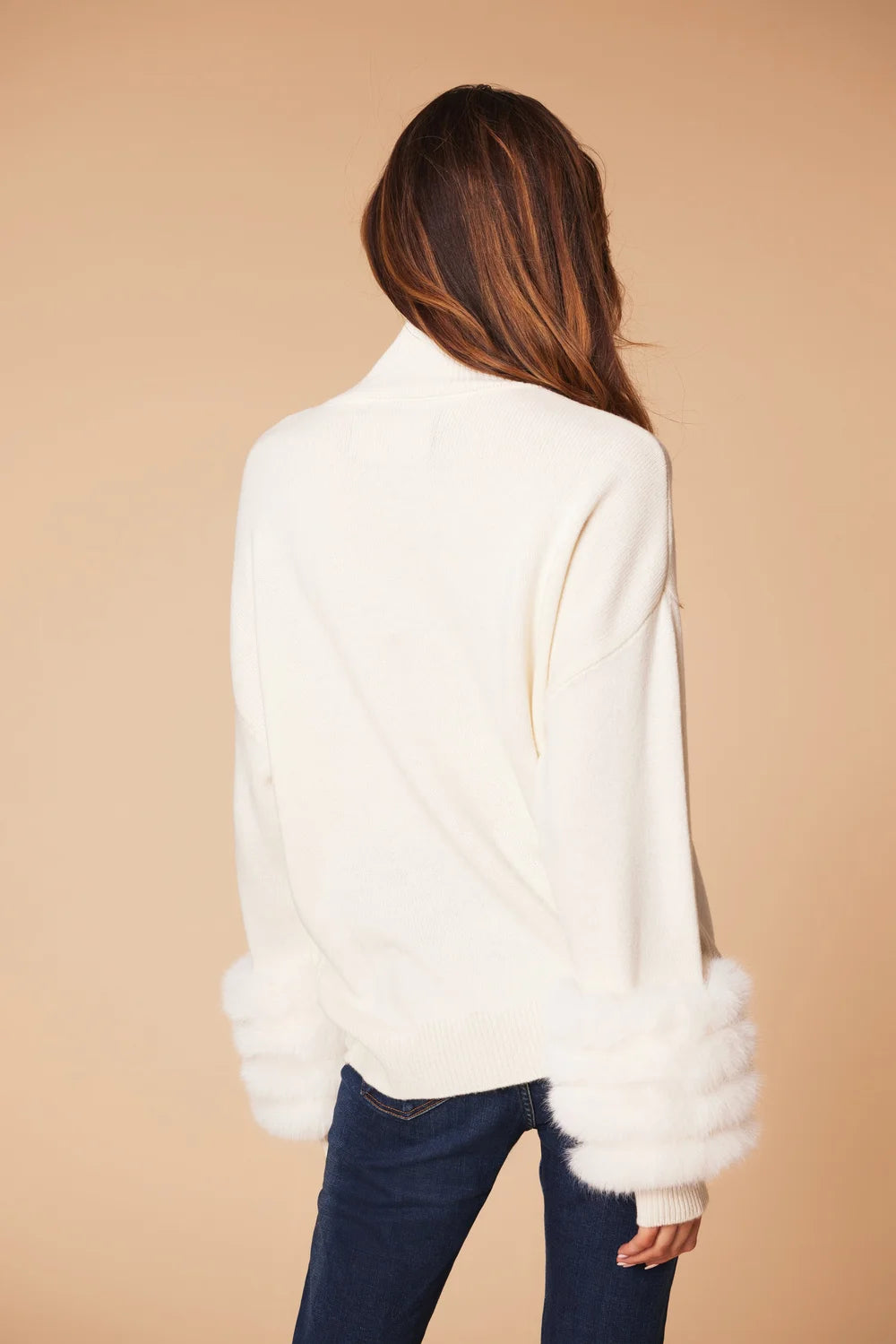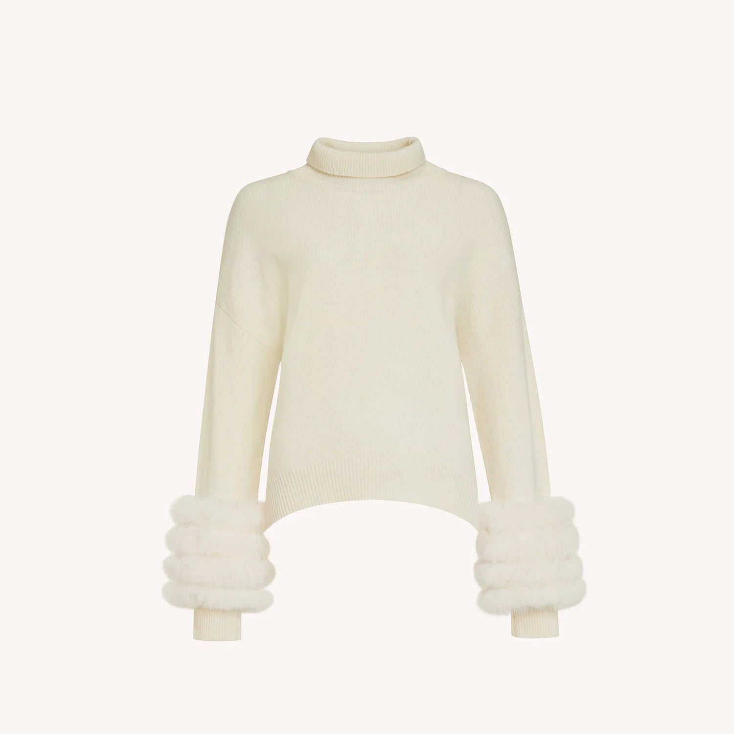 This hunt and hall jumper is the perfect combination of style and comfort for your wardrobe. Crafted with 100% merino wool for a luxury soft feel that lasts, featuring detachable fur cuffs for a more casual look. Finished with high Neck and ribbed cuffs and hem for added comfort.